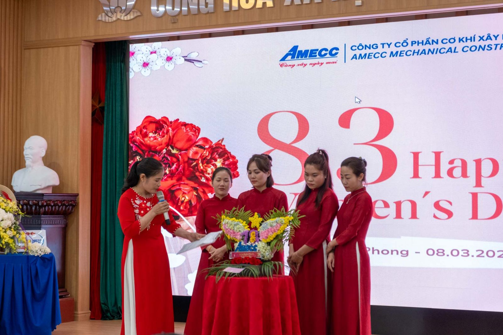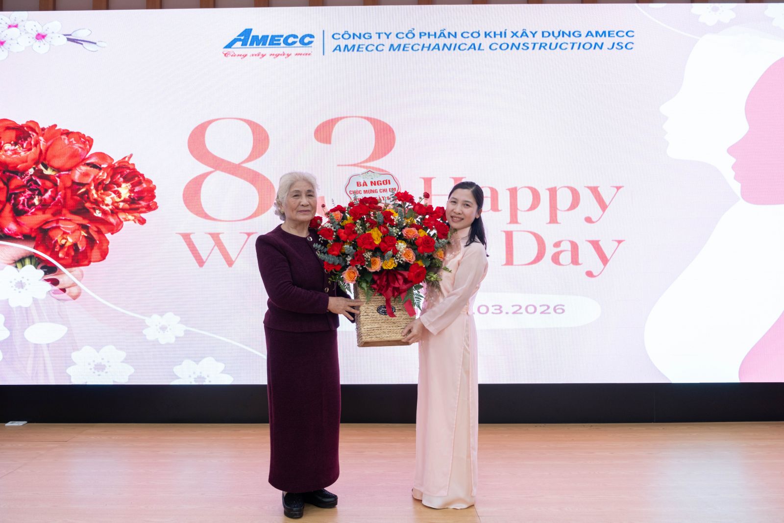 Trong không khí vui vẻ và thân tình, Ban lãnh đạo Công ty đã gửi lời chúc mừng cùng những bó hoa tươi thắm tới các chị em – những người luôn âm thầm đóng góp cho sự phát triển chung của AMECC. Dù ở bất kỳ vị trí nào, các chị em cũng luôn thể hiện sự tận tâm, trách nhiệm và tinh thần làm việc đầy nhiệt huyết.