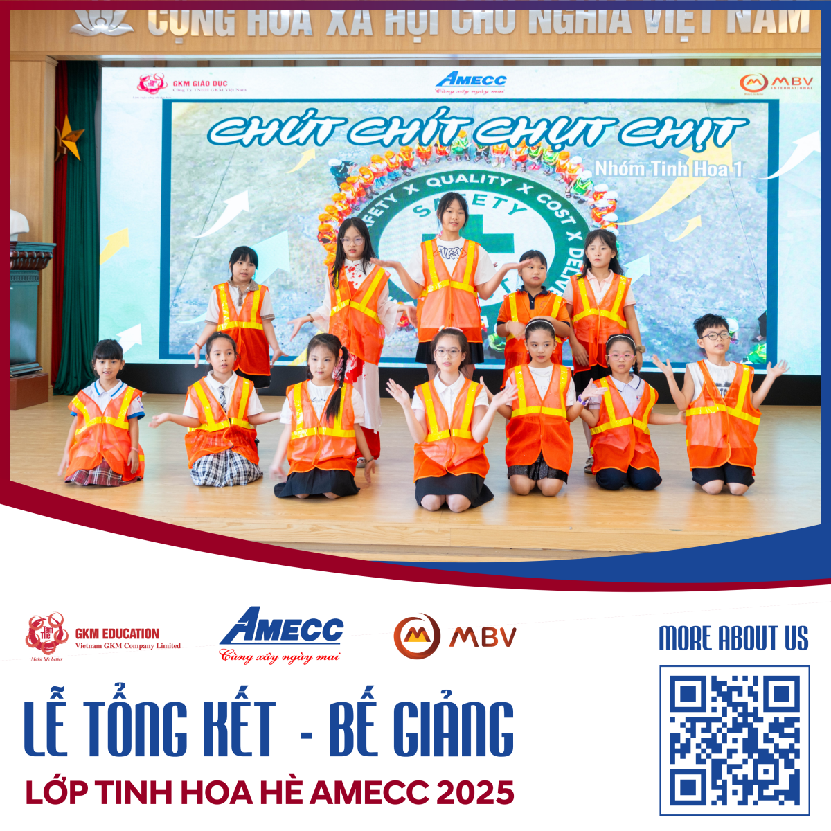 Chương trình được AMECC JSC phối hợp cùng Viện Quản Trị Tinh Gọn GKM thiết kế, mang đến cho các Nhà Quản Trị Nhí (NQT Nhí) những buổi học sinh động, sáng tạo, kết hợp hài hòa giữa kiến thức – kỹ năng – trải nghiệm thực tế.