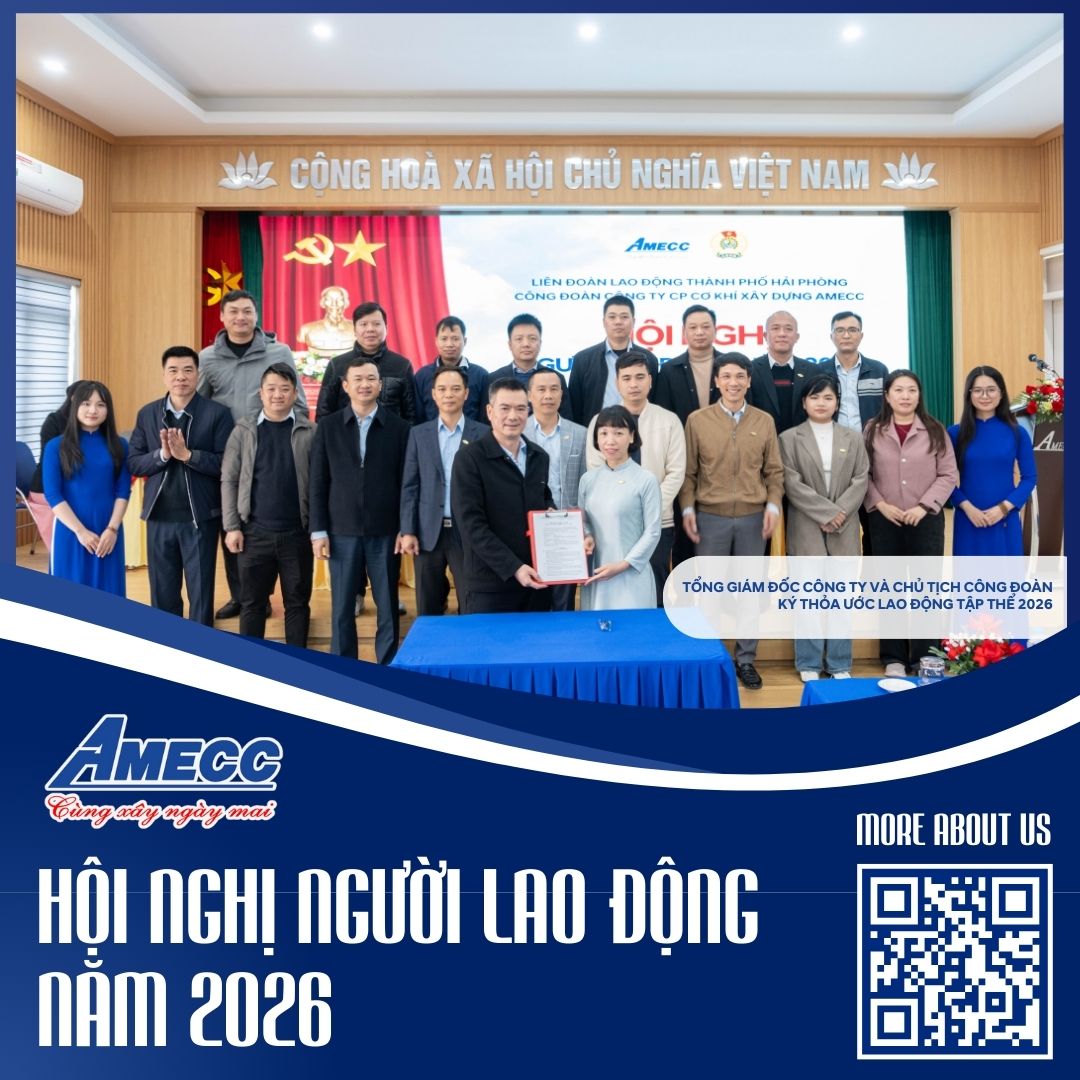 Sáng ngày 25/01/2026, Công ty CP Cơ khí Xây dựng AMECC đã tổ chức Hội nghị Người lao động năm 2026. Đây là hoạt động thường niên có ý nghĩa quan trọng, thể hiện rõ quan điểm nhất quán của AMECC trong việc lấy người lao động làm trung tâm, phát huy dân chủ cơ sở và xây dựng môi trường làm việc gắn kết, ổn định và bền vững.