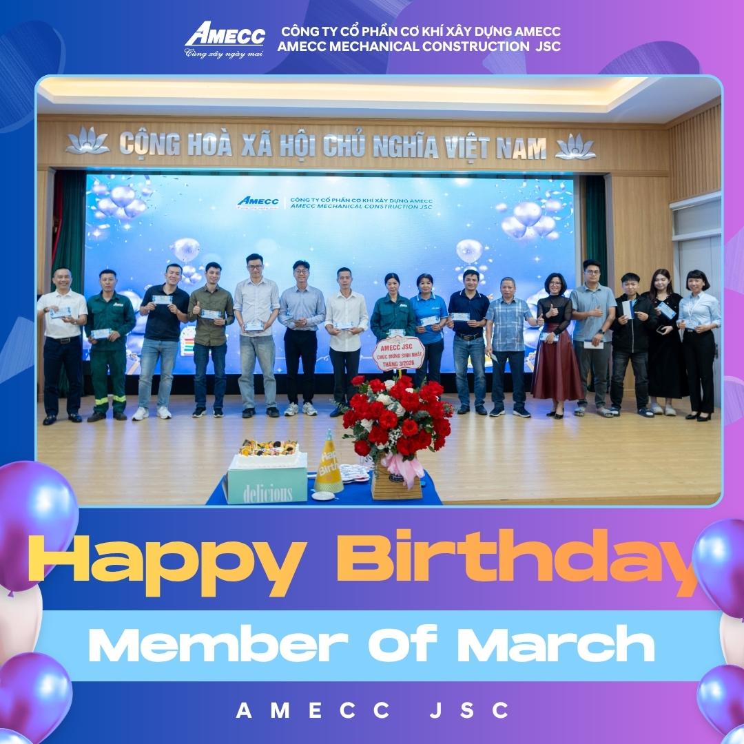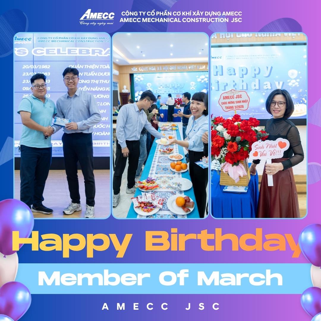 ✨ Những nụ cười rạng rỡ trong buổi sinh nhật tháng 3 chính là nguồn năng lượng tích cực để toàn thể CBCNV tiếp tục cùng nhau đồng hành – sáng tạo – bứt phá, góp phần xây dựng AMECC ngày càng phát triển bền vững.